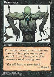 PSD: Se dice que el último draft le faltaban cartas buenas verdes, ya que nada más que podía picar estúpidos troles 4-3 que se regeneran, y que eso no le renta, así que tuvo que splashear a rojo (bola de rayos), a blanco (purificación planar) y a negro (pesadilla), montándose una baraja con lo que poder ganar los eventos de Vintage que se juegan la semana que viene.